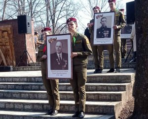 Стимаць ветерань ай Марелуй Рэзбой пентру Апэраря Патрией ши мунчиторь дин спателе фронтулуй! Ын нумеле Советулуй Супрем ал Републичий Молдовенешть Нистрене ши еу персонал вэ