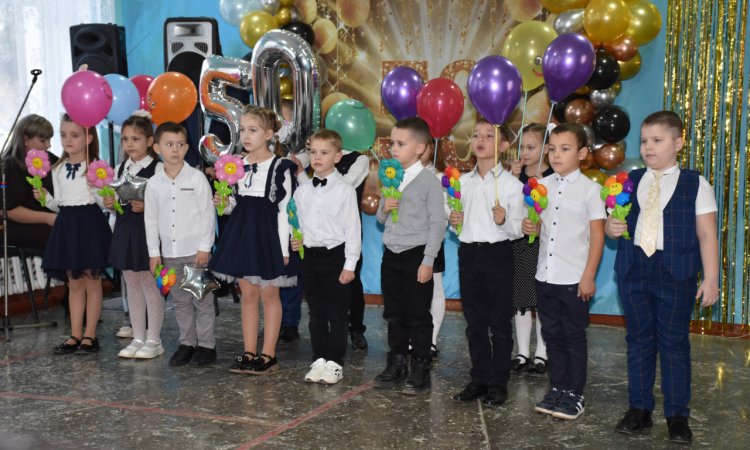 Солемнитатя а инаугурат-о директорул школий Татиана Яцкова, еминент ал ынвэцэмынтулуй публик дин РМН, каре а сублиният, кэ ын чей 50 де ань де екзистенцэ шкоала а петрекут ын вяца десинестэтэтоаре 1659 де абсолвенць ай школий ӂенерале де базэ ши 1261 – ай школий медий комплете. Динтре ачештя 53 де елевь с-ау ынвредничит де чертификате спечиале, 63 ау абсолвит шкоала ку медалий де аур ши арӂинт. Азь ын шкоалэ ышь фак студииле 213 копий. Ей сынт инструиць де 26 де педагоӂь, вырста медие а кэрора есте де 46 де ань. Дой ынвэцэторь сынт кавалерь ай Ординулуй «Глория Мунчий», 10 сынт титуларь ай медалией «Пентру мункэ сусцинутэ», 12 поартэ ыналтул титлу «Еминент ал Ынвэцэмынтулуй Публик дин РМН».