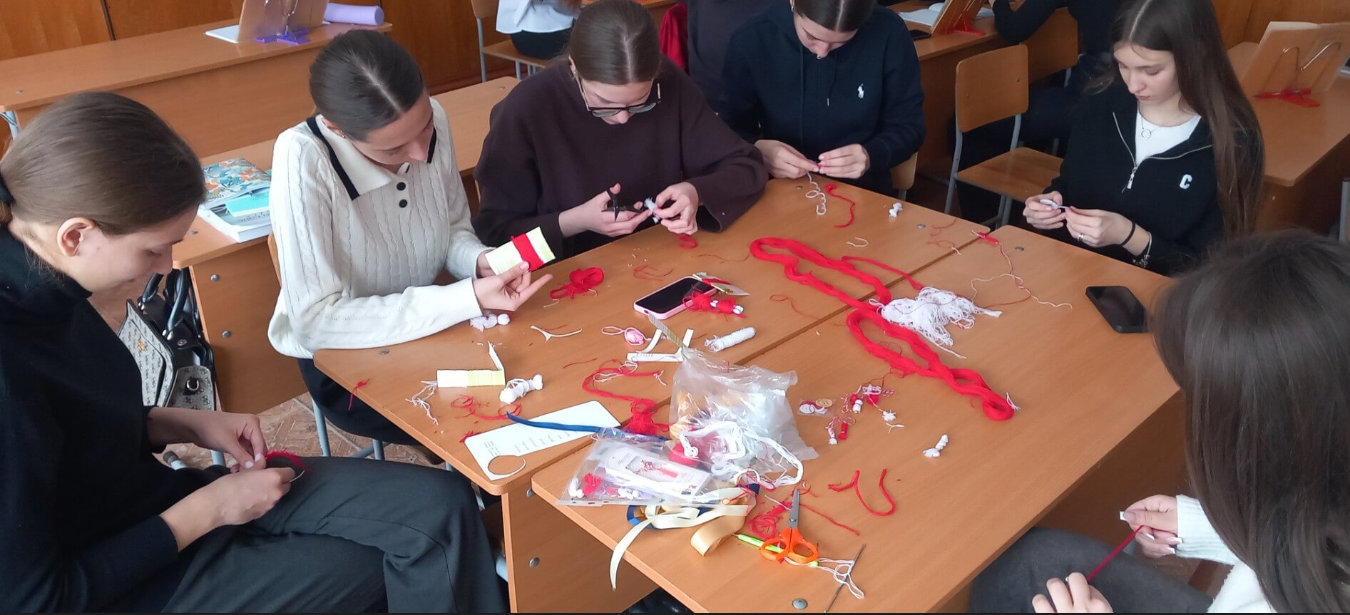Суб ындрумаря ынвэцэтоарей Анастасия Ивановна Дариенко, партичипанций ау афлат семнификация шнурулуй алб-рошу – симбол ал примэверий, ал сперанцей ши ал реынноирий. Кулоаря рошие репрезинтэ вяца, драгостя ши енерӂия, яр албул симболизязэ пуритатя ши ынчепутул унуй ноу чиклу ал натурий. Атмосфера а фост калдэ ши плинэ де ентузиасм, яр меселе ау фост акоперите ку ацэ, фетру, мэрӂеле ши ацэ колоратэ.